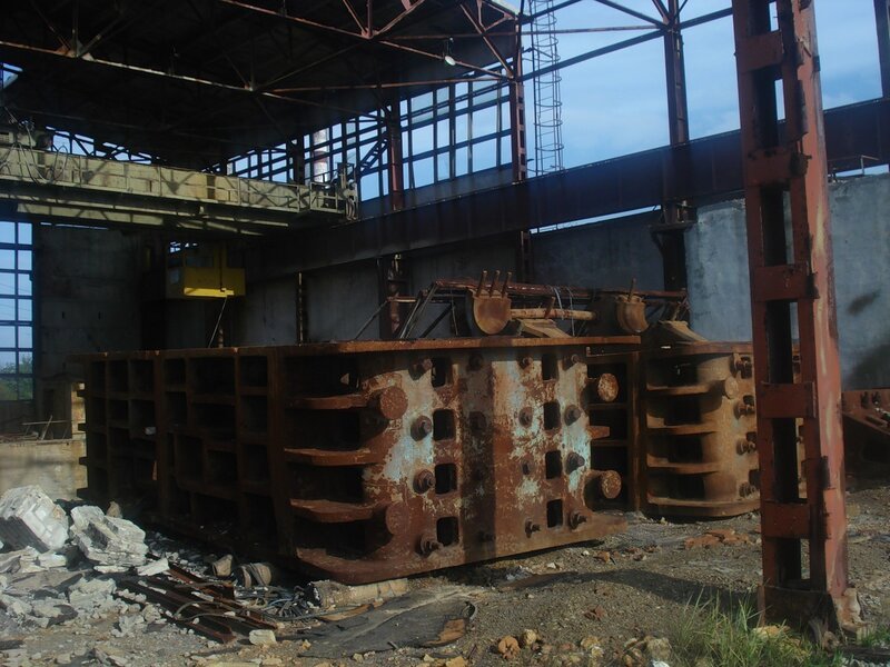 Далі ми вирішили підїхати до місця демонтажу одного з підприємств сірки, де нам зустрілися рідкісний гусеничний кран TAKRAF RDK-28 виробництва НДР та 50тонний мостовий кран у цеху, який демонтується. Всередині цеху - величезна яма з водою: