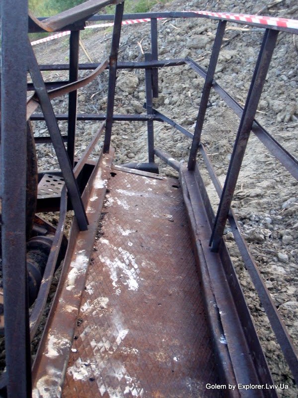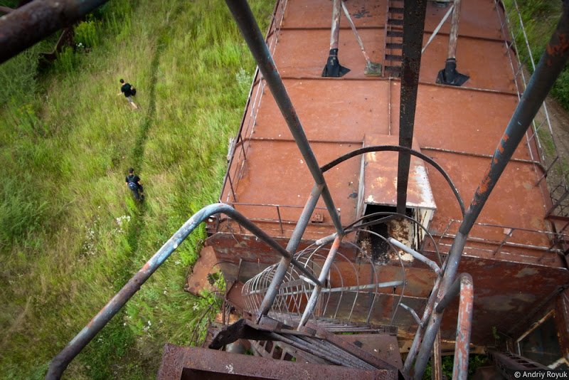 Охорони ми на місці не застали, як і дощу. Оглянули для початку менший екскаватор а потім подалися до більшого. Усі входи до нього були чи то заварені, чи то під замком. Але все таки я знайшов оптимальний шлях, і ми потрапили на нього, а також, відкривши двері, через кабіну у нутрощі могутнього екскаватора.