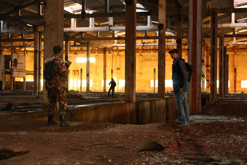 ...йдем на дорогу і чуєм звук мотора(можна було кинутись в кущі і заховатись,але нам не дуже хотілось бігаючи по снігу намочити ноги)...робим розворот на 180 і повертаємся спиною до тої сторони з якої буде їхати авто...і та сама нива що стояла зупиняється біля нас...двері відкриває охоронець і запитується що ми тут робим...ми відповідаєм що просто гуляєм...він каже що це «обєкт»і щоб ми забирались...ну ми його посухались і пішли на вихід...по дорозі назад нам зустрілась та сама упряжка яка везла метал і тих самих мародерів...так і закінчилась наша вилазка...