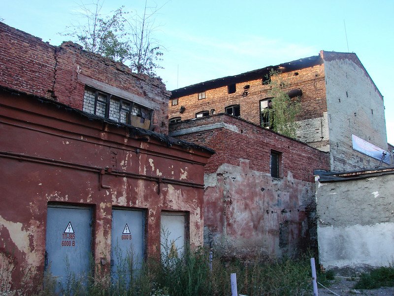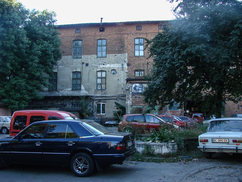 Одна з небагатьох збережених будівель заводу. На першому поверсі знаходиться автосервіс, другий і третій належить пейнтбольному клубу