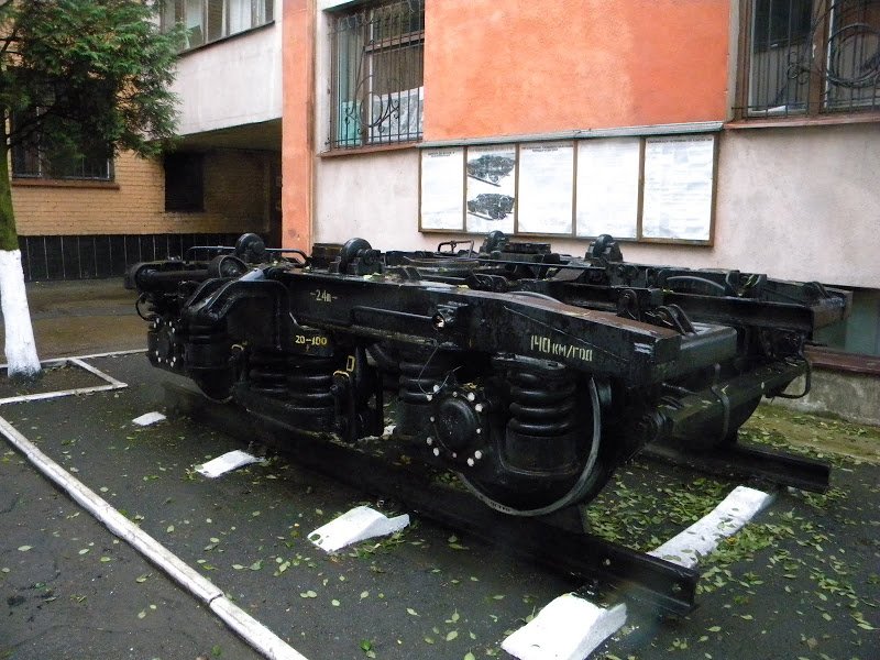 Колеса від поїздів на території. Я завжди думав, що то для краси, типу музею під відкритим небом. Виявилося, що для навчання молодих спеціалістів, щоб показати їм що до чого і куди коні запрягати.