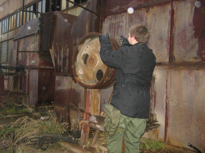 Були Roy, Venick, :-), AHD, Sanecka і я. Зранечка зібралися, під дрібним дощем перелізли через низький цегляний паркан, побродили по території, залізли в цех, де колись робили плитку.