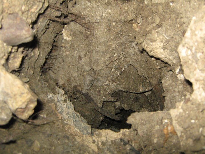 Ми правда теж не залишились без сувеніру... натрапили на дуже вузесеньку діроку яка на перший погляд виглядала як щілинка, побачивши за нею продовження почали копати, кінцевий результат дав нам лаз 1 метер з кімнатою в кінці десь 1х1 метра, де нещодавно було житло лисиці, при розкопках дірки були знайдені кості савця(потім визначили по черепу що це лисиця) а також уламки кераміки, прошарування глини з попелом дали підстави думати що там могла бути піч. Уламки будуть передані на вивчення Оресту Корчинському.
