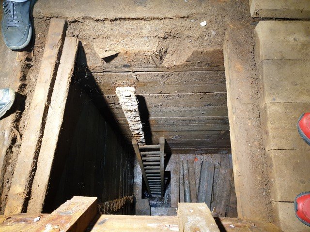 Відкриваємо дерев'яний люк до шурфу шахти. В обличчя б'є повітря, насичене сірководнем.