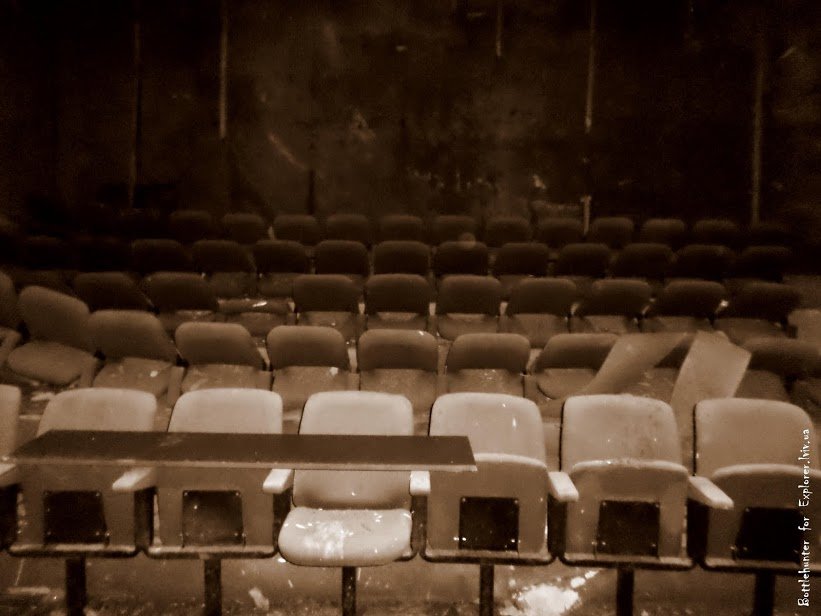 Похилені ряди крісел в залі невеличкого кінотеатру