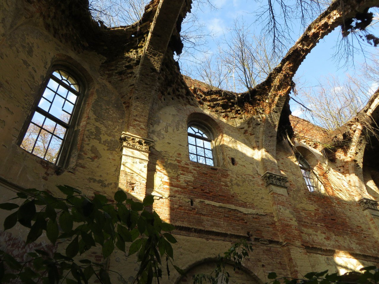 В глибині видніються рештки хорів на рівні 2 поверху, і двоє дверей, хори були дерев'яні від них залишився лише ряд отворів в стіні.
