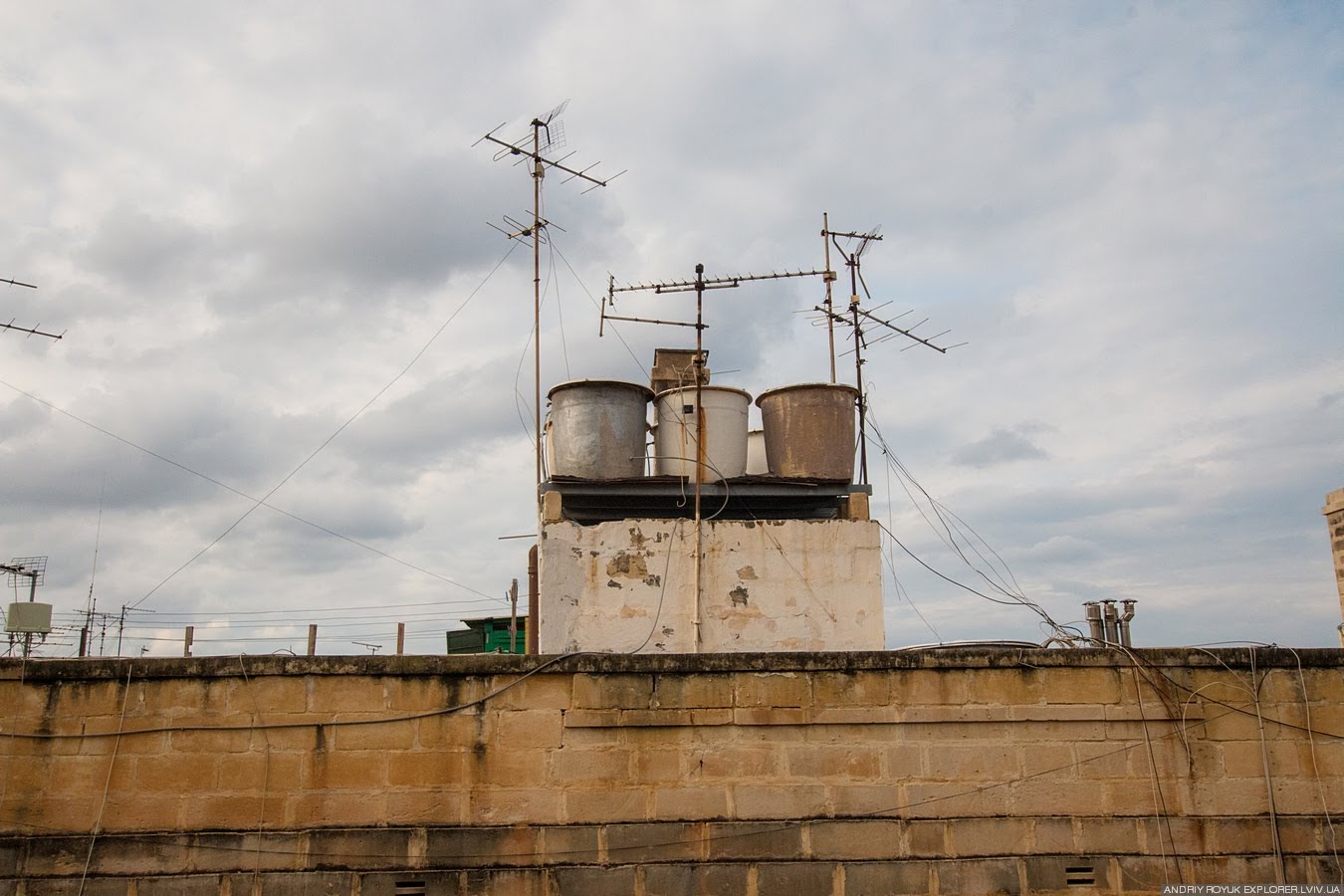Внутрішні дворики. Знову ж таки, зовнішні труби, а також баки з водою.
