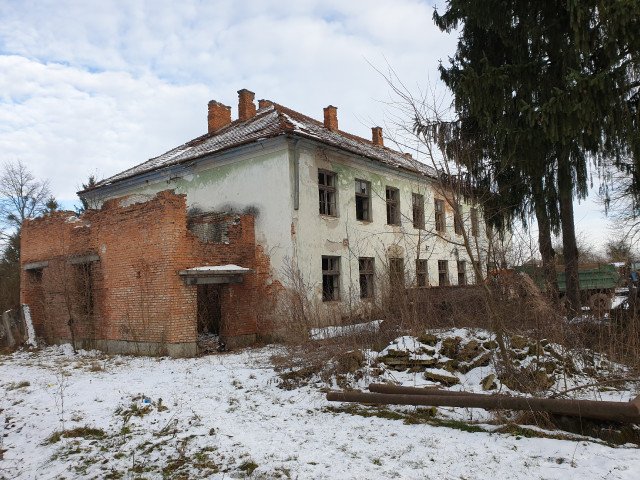 Цікава історія - 70% розваленої будівлі маєтку, в найменшому сегменті ще живе старша жіночка :(