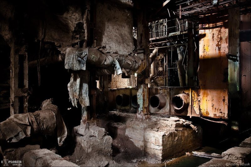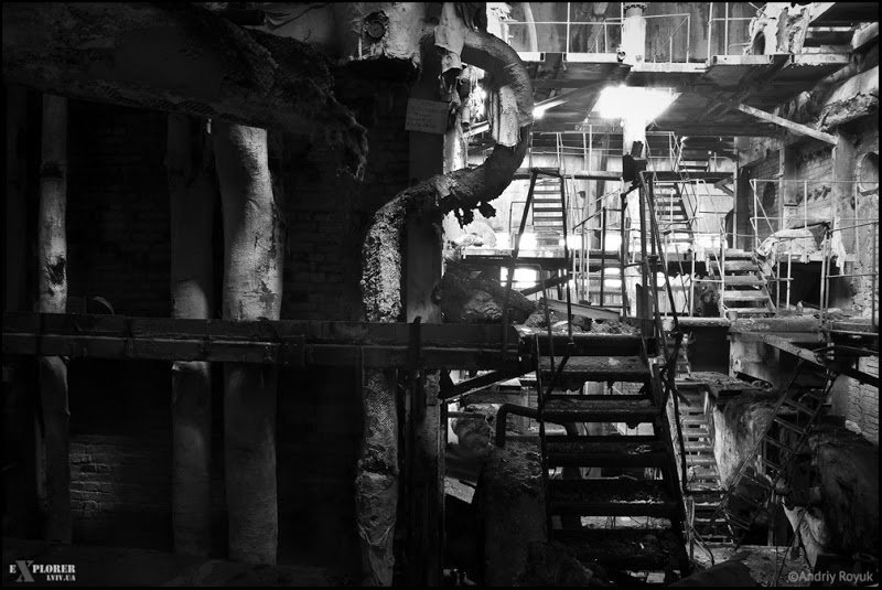 Переходимо власне на територію заводу. Тут першою кидається в очі височезна труба та немаленька котельня - хоча менша ніж коло Немирова. Котельня також гарно закрита - але для нас тепер це не перешкода! Усередині все ціле, окрім вирізаної електропроводки на 90%. На тих 10% шо залишилось світло таки подається і не в останню чергу тому, що на трубі розміщені антени мобільних операторів. Усього в котельні 4 котли, один зараз відсутній. Три здається гріли пару на видобуток сірки, один використовувався для опалення. Потому сходили ще на насосну підстанцію, багато величезних баків. Присутня також станція завантаження сірки у цистерни (колія ціла) і ще із три-чотири будинки до котрих невдалось попасти через відсутність часу - ми були там не 40 хв. Отож маємо ще один об'єкт для дослідження +доступ практично будь куди.